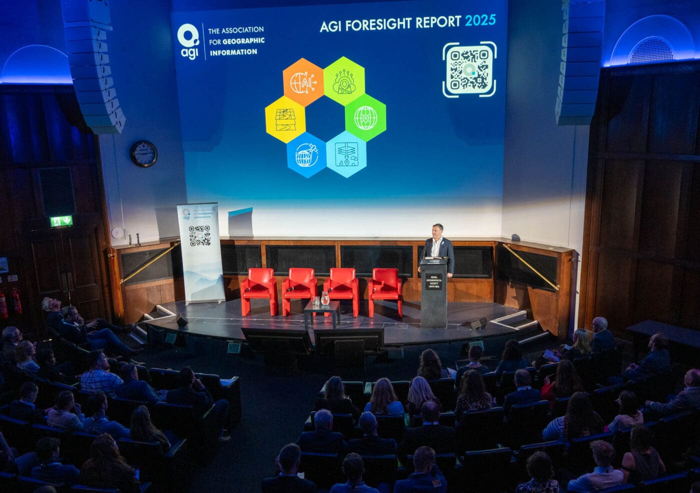 The AGI Foresight Report 2030 was officially launched to an audience of more than 200 geospatial professionals from government, academia, and industry, at the AGI Foresight 2025 Conference at the Royal Geographical Society (with IBG) in London today. With keynote presentations from Ed Parsons, Geospatial Technology Advisor and Google’s first ever Geospatial Technologist, and Denise McKenzie, Past Chair of the AGI and Managing Partner at the PLACE Trust, the agenda also featured representation from AtkinsRéalis, Idox Geospatial, and 1Spatial, together with an interactive presentation from the AGI Early Career Network.